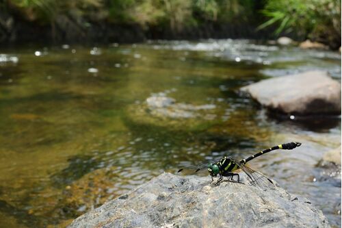 今日は夏のサナエでも撮れないかなと、アオサナエの川へ。コオニヤンマが至るところにいる中、少し小さめのトンボを発見。 オナガサナエでした。 朝から暑かったからか、オベリスク姿勢をとってました。特長的な尾部付属器をアピールしてるかの様です。にし…